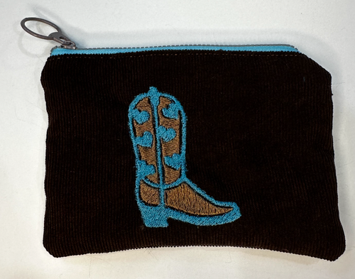 Blue and Brown Cowgirl Boot Corduroy Zipper Pouch
