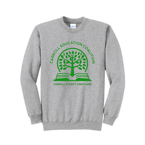 Carroll education coalition- gray crewneck sweatshirt with green design