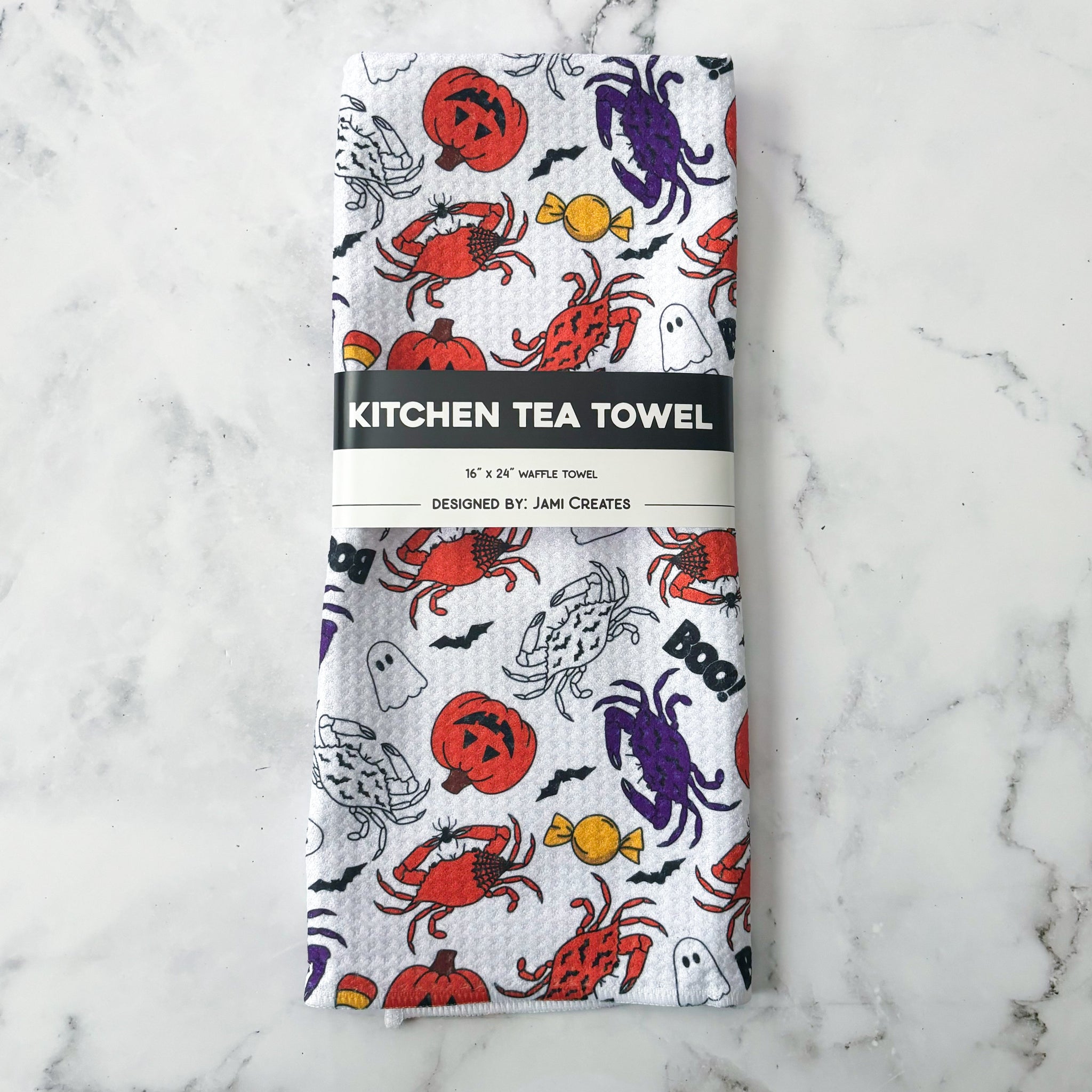 Item: Maryland Halloween Crab Patterned Waffle Kitchen Dish Towel