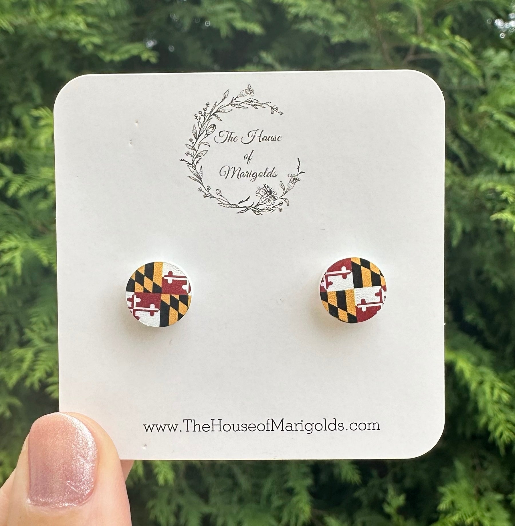 Show your Maryland pride with these flag inspired studs with stainless steel posts. Choose between studs or dangles. Pattern location may vary slightly.