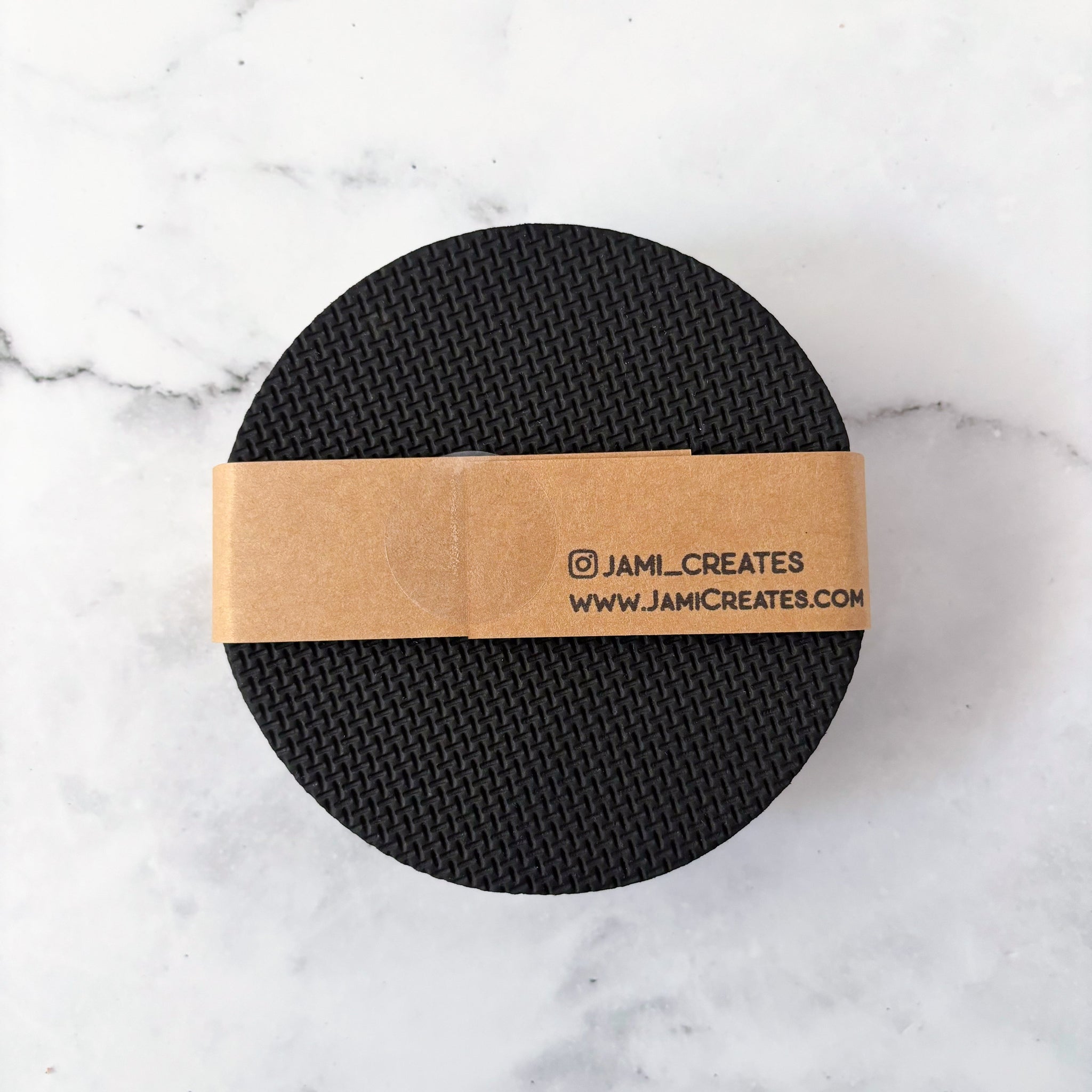 Size/ Shape / Material: Round Neoprene: 4" diameter, 7mm thick. Neoprene type fabric. Back / edge = black