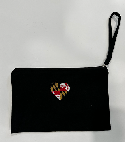 Maryland Flag Heart Embroidered Wristlet Pouch