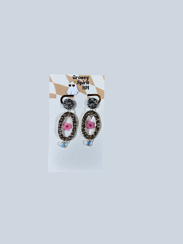 Silver frame pink floral earrings
