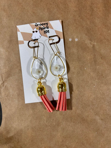 Gold floral tassel earrings