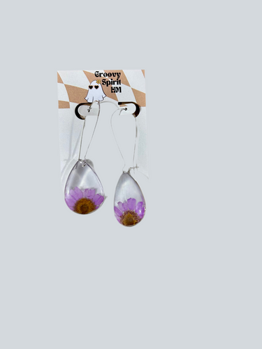Purple daisy tear drop chandelier earrings