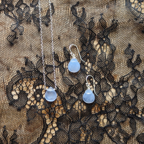 Blue Chalcedony Almond necklace/earrings