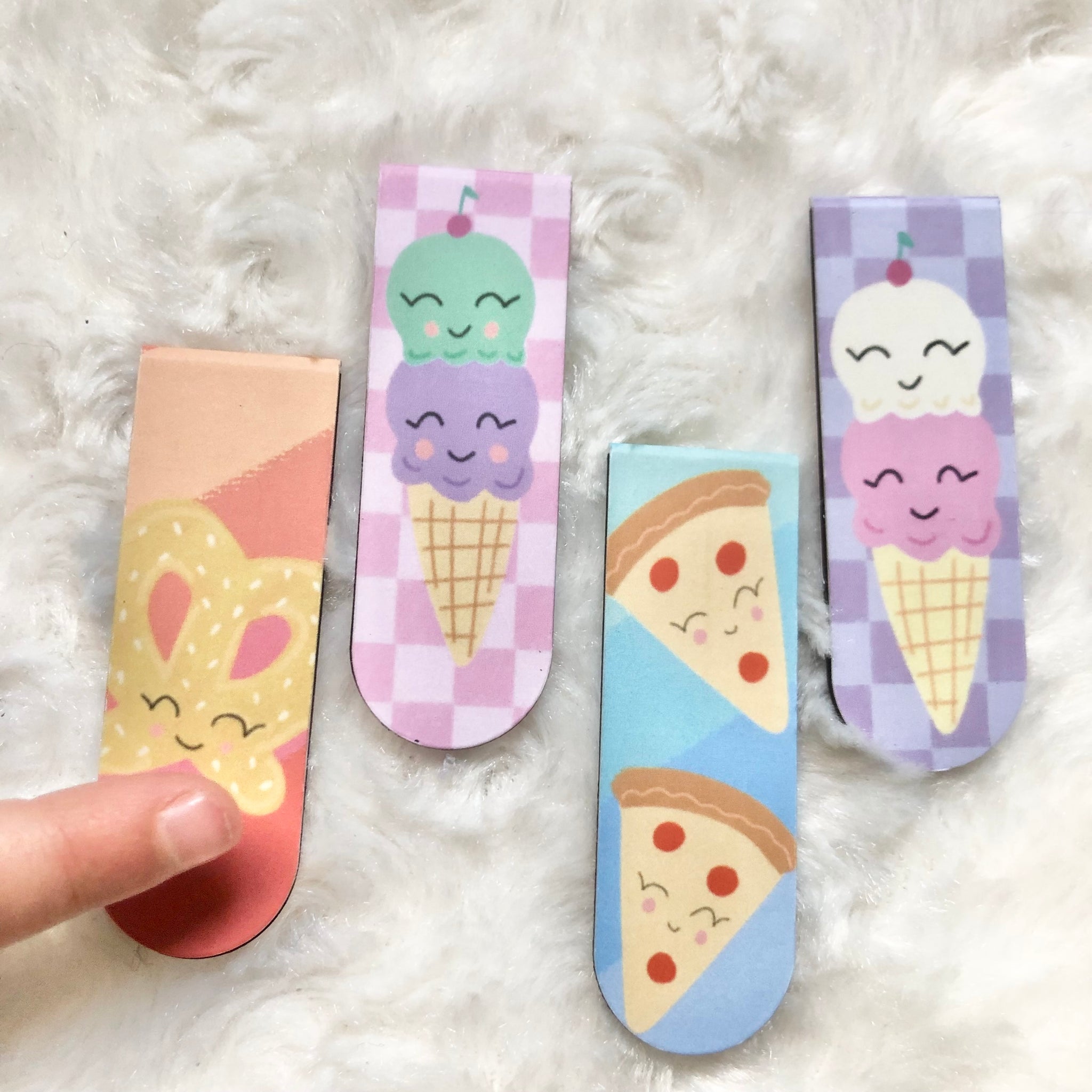 Fun magnetic bookmarks with happy and colorful designs. Perfect as a gift or for your own personal reading material!