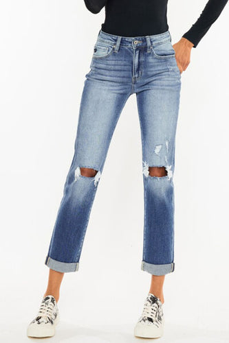 Kancan High Waist Chewed Up Straight Mom Jeans