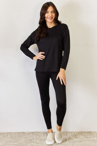 JULIA Round Neck Long Sleeve T-Shirt and Leggings Set