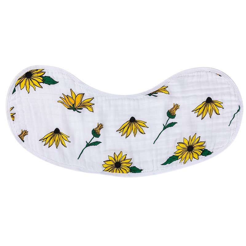 Celebrating the Maryland state flower, we bring the lovely unisex Black Eyed Susan swaddle and bib collection. The black-eyed Susan is native all throughout North America. These unisex burps and bibs are great gifts. Everyone needs more bibs. Make your own multipacks. Extremely soft and extremely thick, they will lap up everything thrown at them.