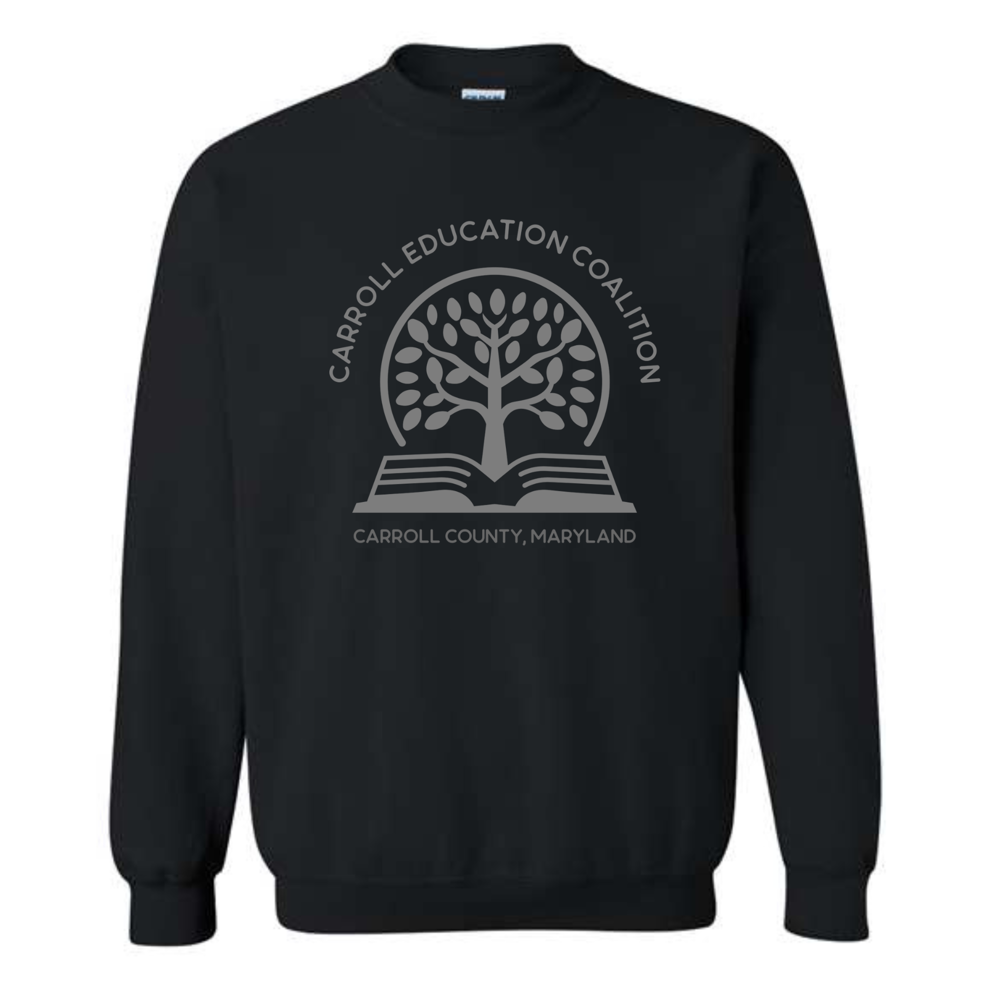 Carroll education coalition- black crewneck sweatshirt with gray design