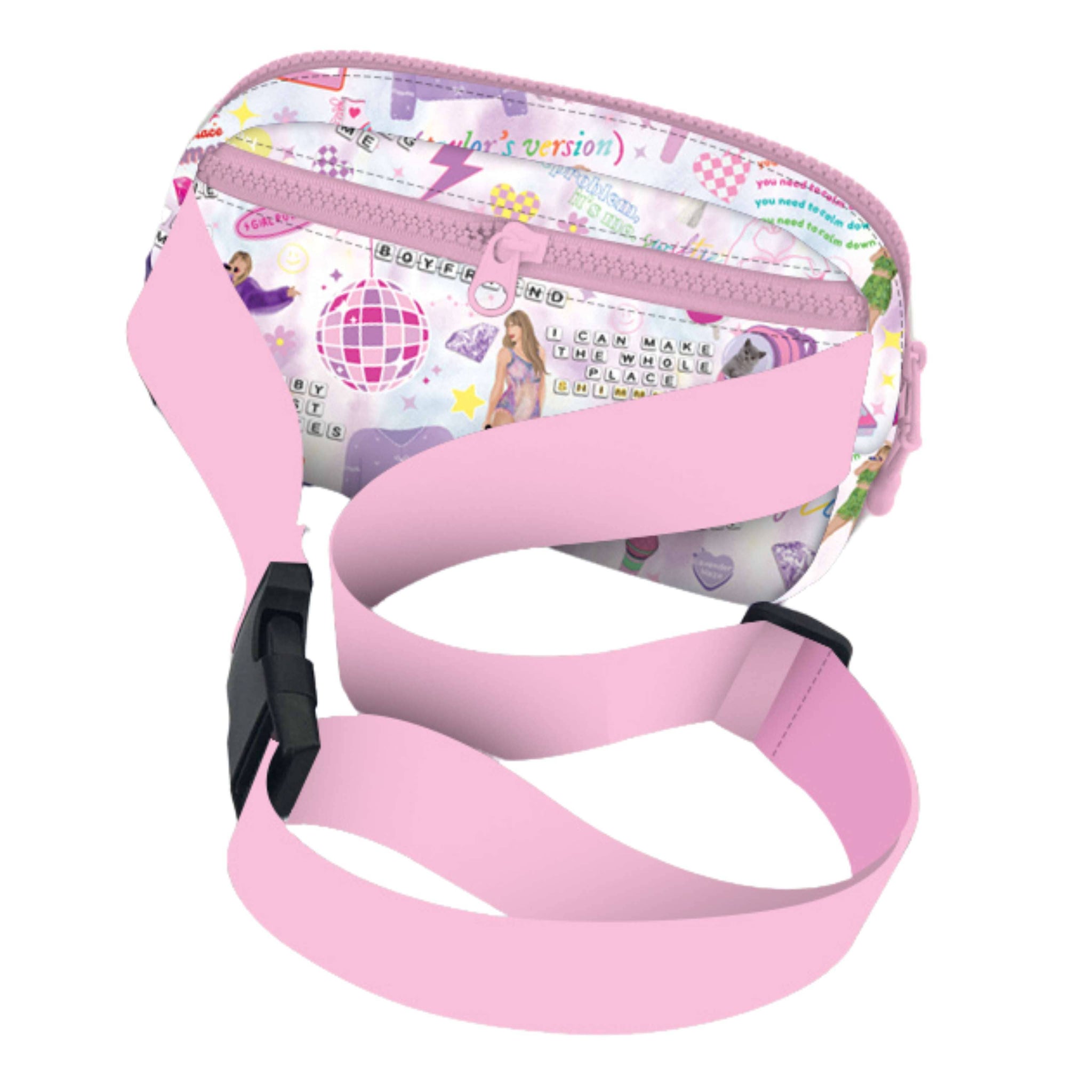 Swiftie gifts continues with back to school season with our Eras inspired belt bag and crossbody. This coordinates with the the play backpack and bag and smaller cosmetic, pencil pouch and bag. Taylor Swift Play Backpack Information :: Overall Size approximately: 7" high x 4" wide by 1.5" deep. This is a great size for 4-10 year olds or for a non-school backpack. :: Custom printed saffiano pu leather-like material, which is high quality and wipeable Satin lined, coordinating pink zipper, and pink strap Coordinates with our entire Swiftie Eras collection for all of the Swiftie obsessed.