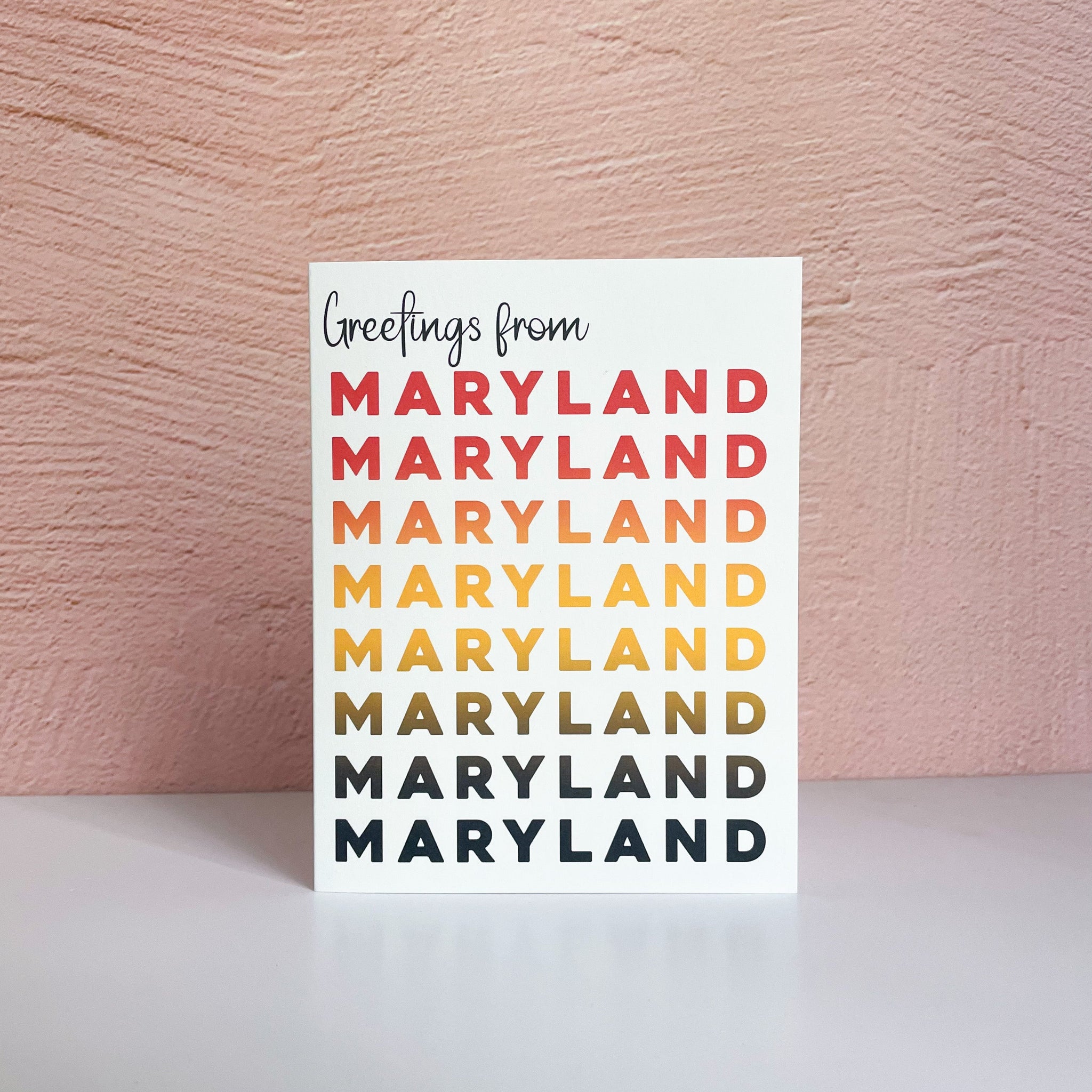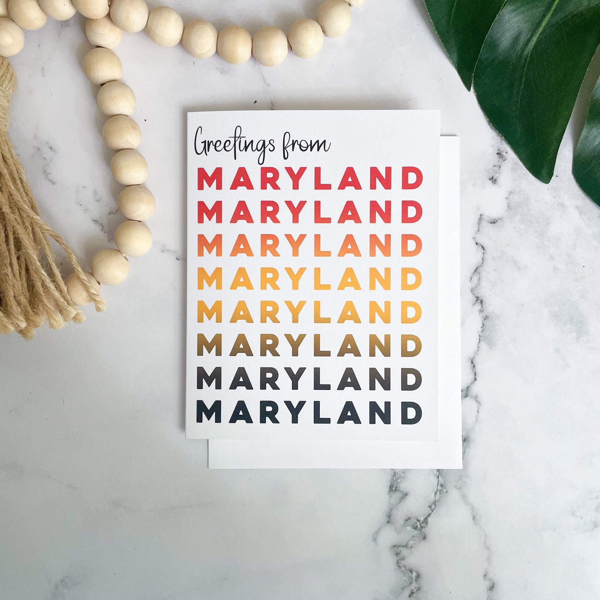 Send your friends and family some 'mary-love' with this charming Greetings From Maryland greeting card! Whether you're saying hello or goodbye, this delightful design will show your love and pride in the Old Line State!