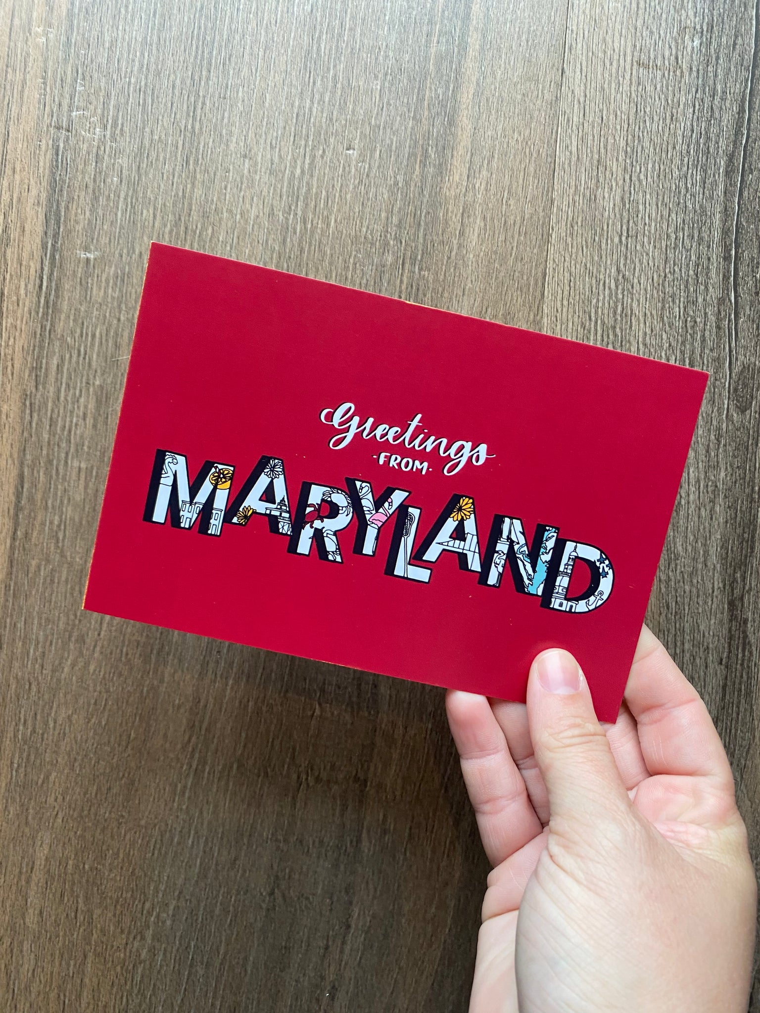 This 4" x 6" Maryland Icons Postcard is your ticket to a mini-tour of the Old Line State! From Baltimore to Annapolis, you can spread your Maryland pride and share some stately sights with this postcard!