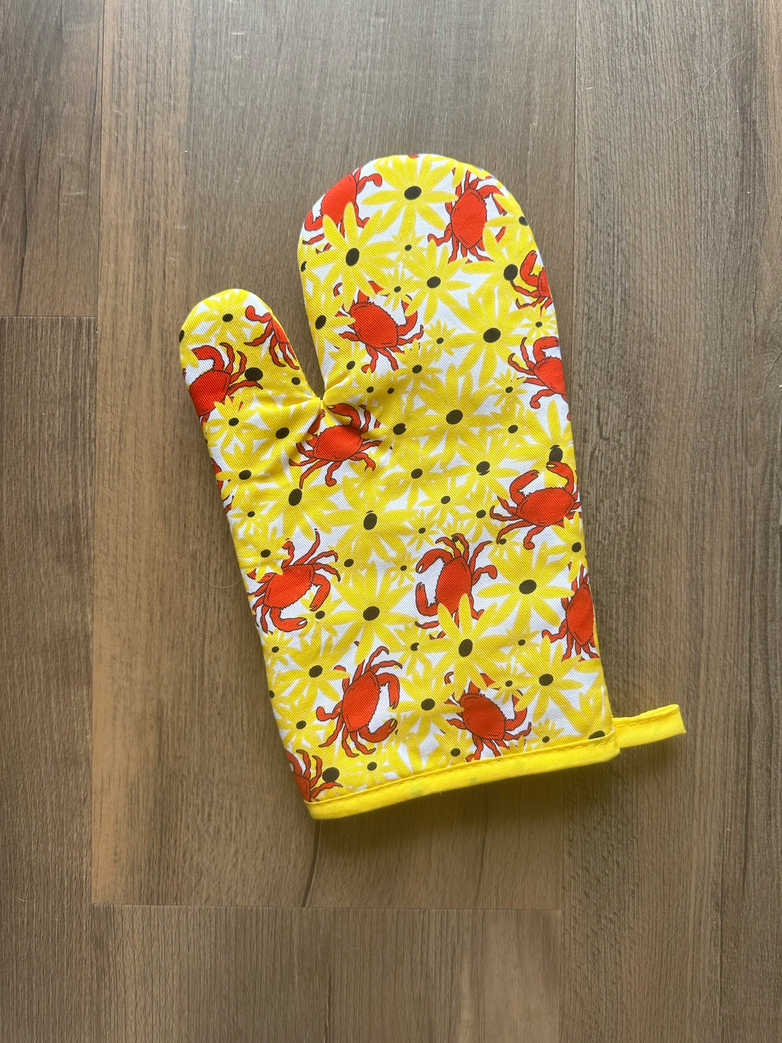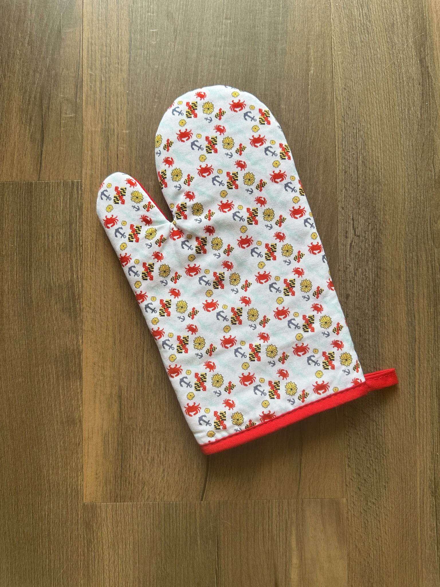 Unleash your inner Maryland pride with our oven mitts! Choose between two designs: Chesapeake Bay or crabs and susans. Protect your hands while adding some quirky flair to your cooking game!