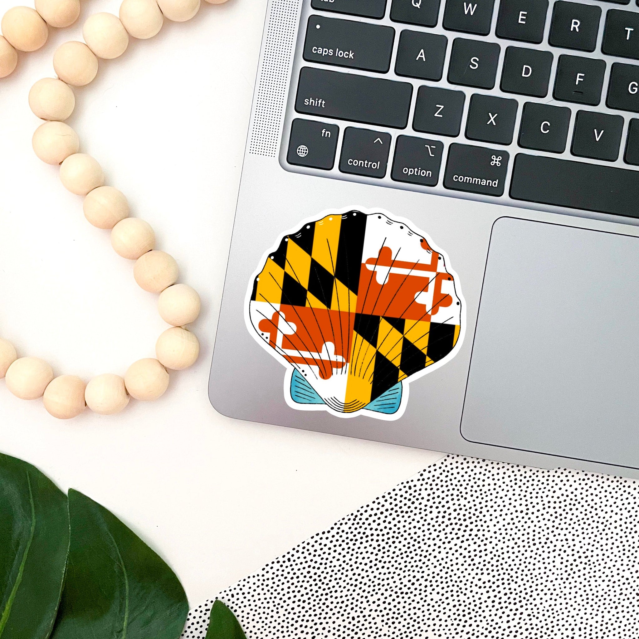 Show your Maryland pride with this awesome Seashell Sticker! It's a perfect addition to any car, laptop, or notebook to remind everyone who's beach is better! Sparkle with pride and let everyone know you're from the great state of Maryland! (If they ever doubt it, you've got the proof.)