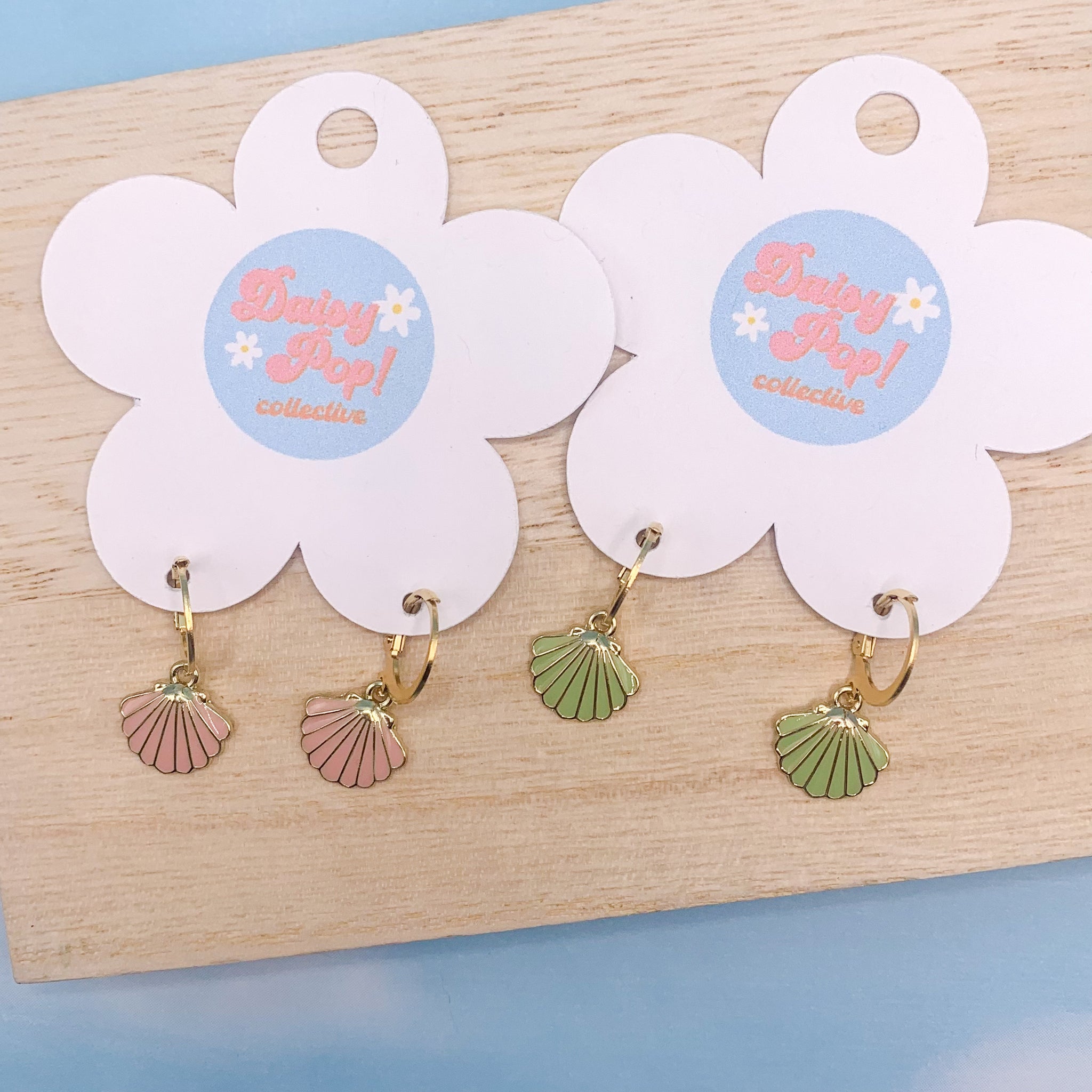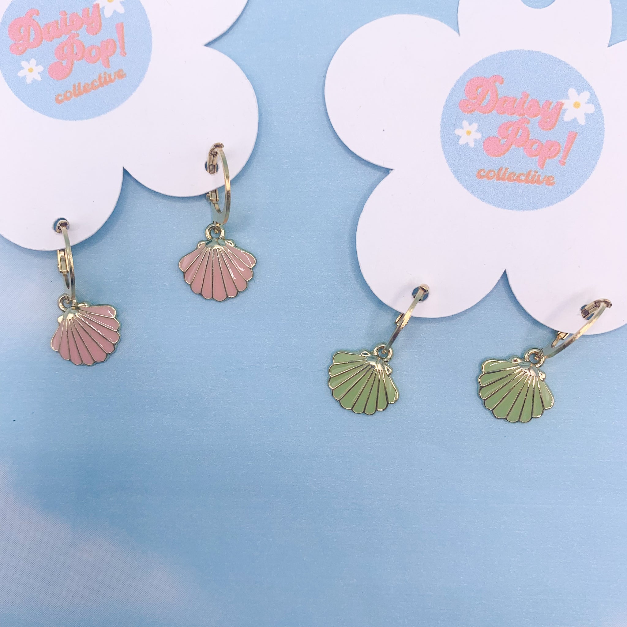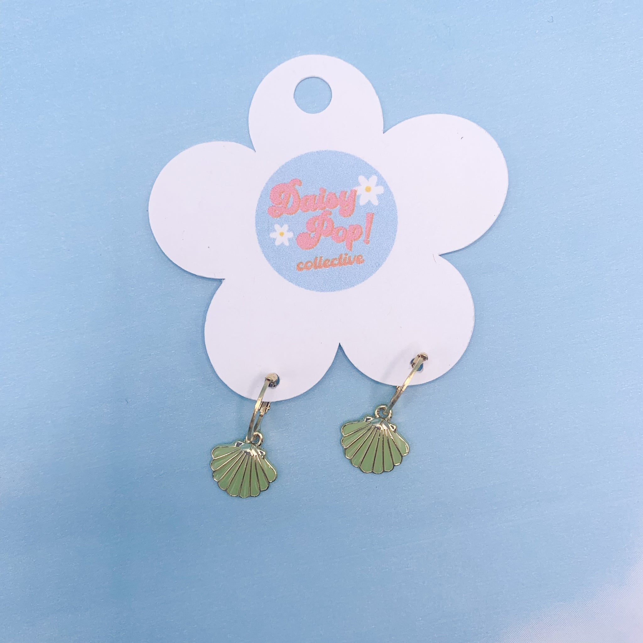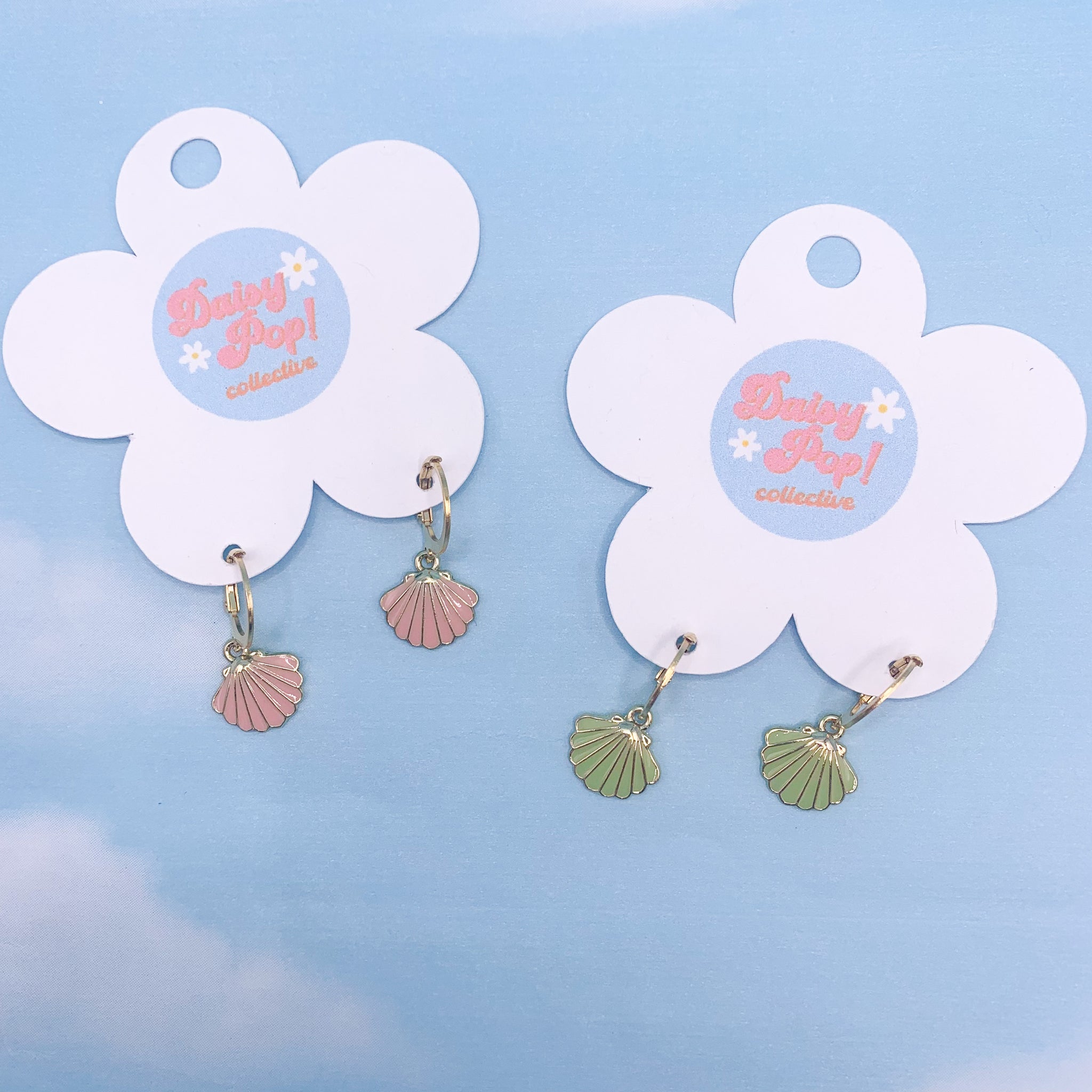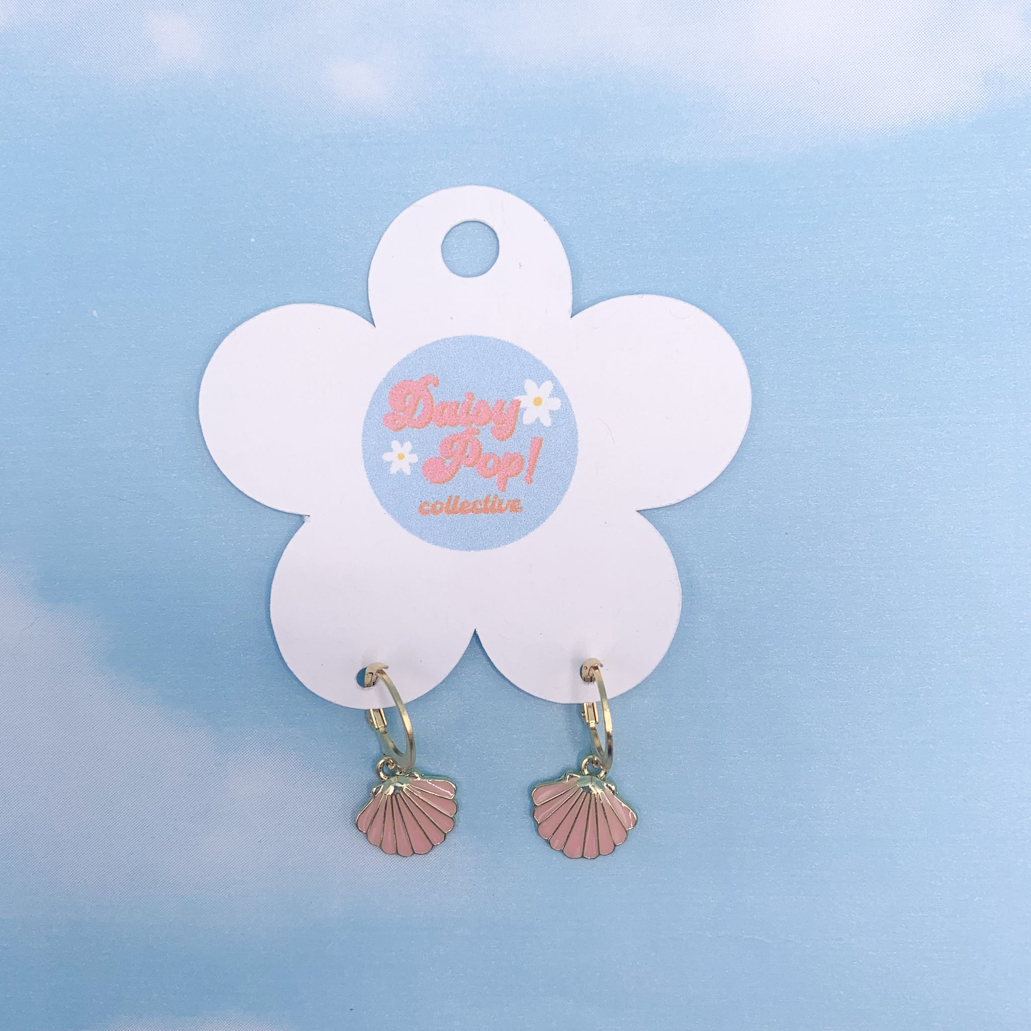 These cute summer shell earrings are approximately 1 inch long, and are set on stainless steel hoops making them great for sensitive skin.