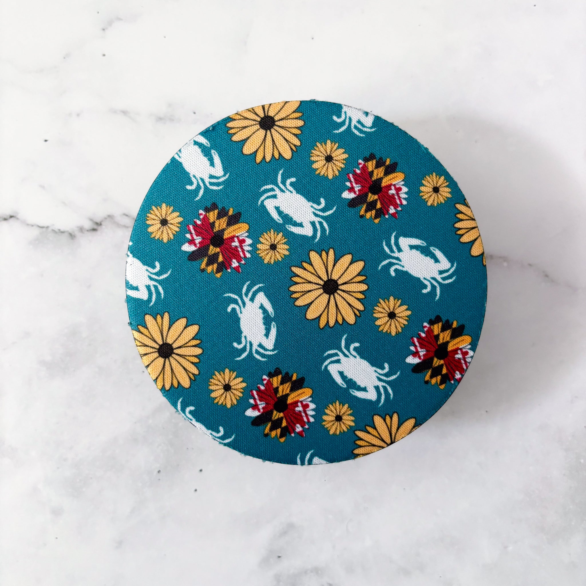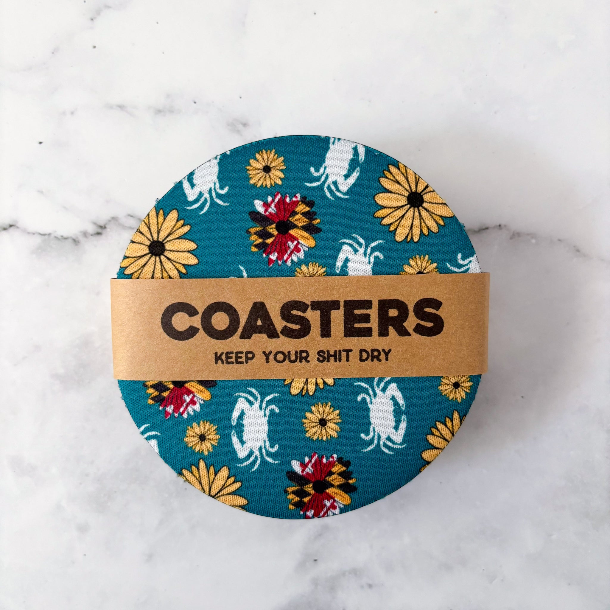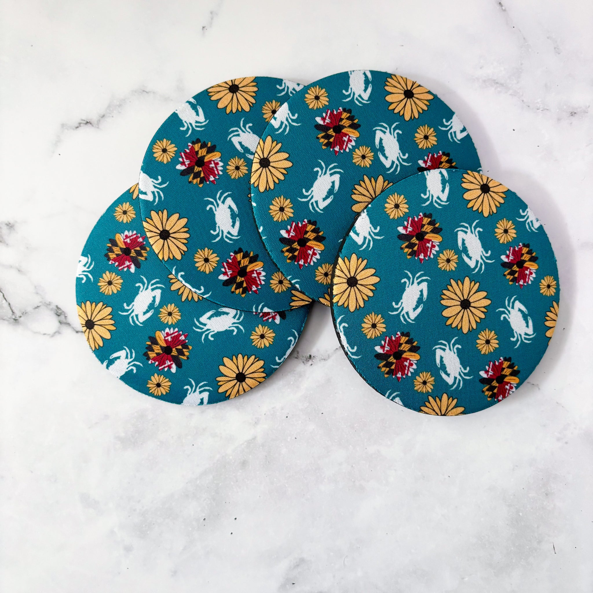 Add a pop of color and charm to your home with these Turquoise Maryland Flower & Crab Coasters. Protect your surfaces with these vibrant, unique coasters featuring the iconic Maryland crab and state flower. Perfect for your Maryland themed decor or as a gift for any crab lover.