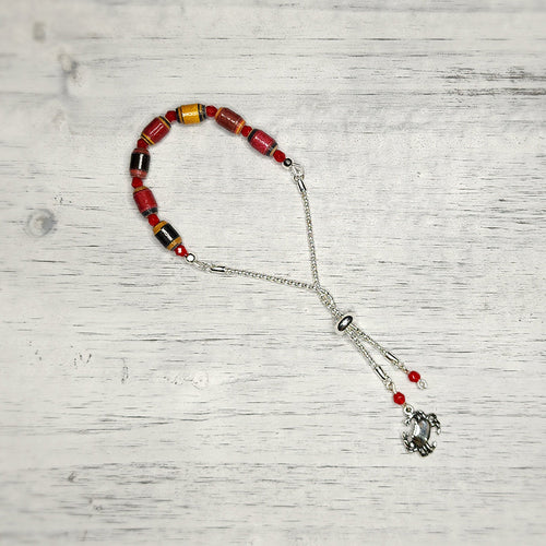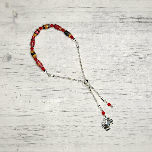 Maryland Flag Paper Bead Adjustable Slider Knot Bracelet w/ crab charm