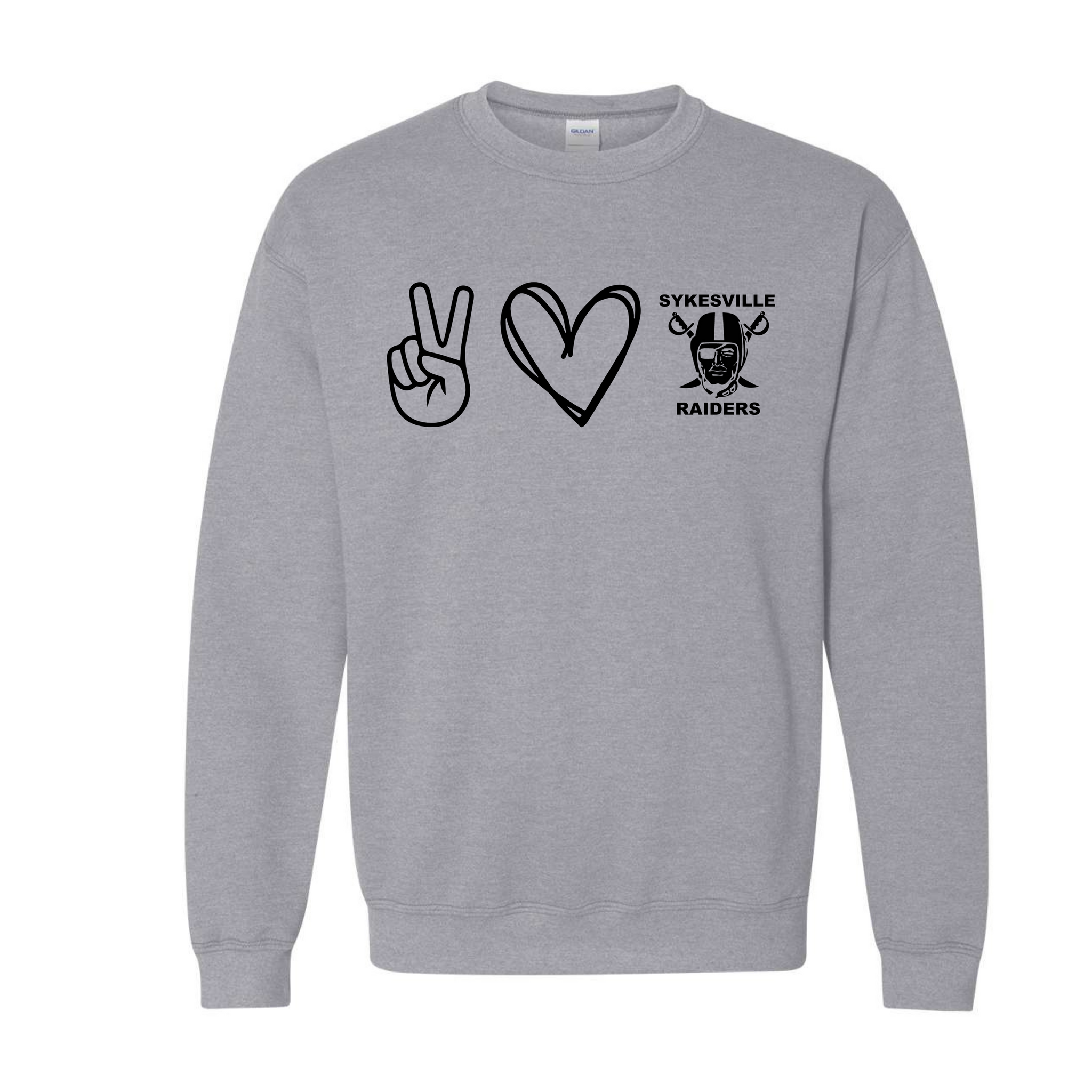 Raider apparel- peace love raiders - tee, long sleeve, hoodie, crewneck