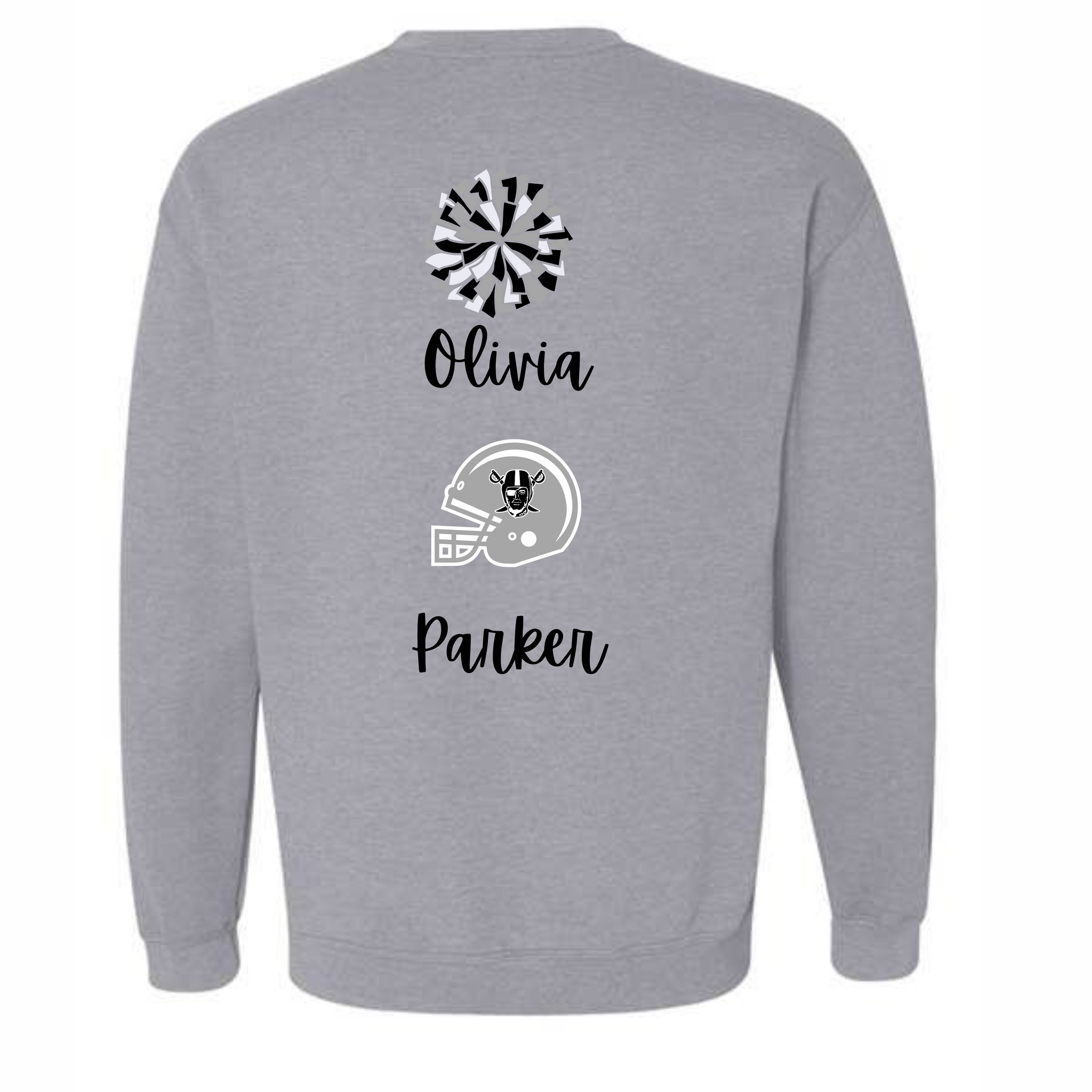 Show your football pride in style- repping your favorite kiddos! Printed on a gildan heavy unisex crewneck. Choose your normal size for a fitted comfy style or go up a size for a roomier oversized fit. Add up to 4 player names