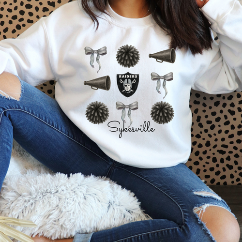 Sykesville Raiders cheer watercolor bows- tee, long sleeve, hoodie, crewneck-white