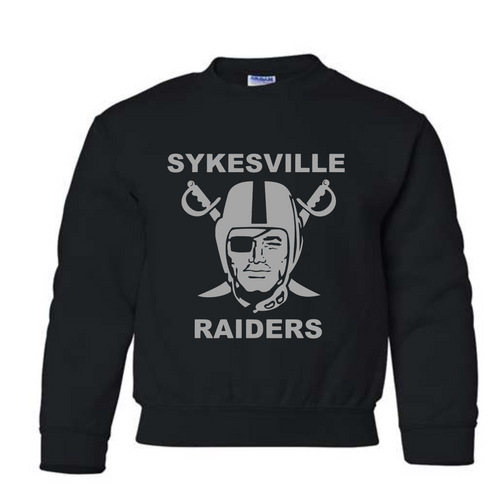 Sykesville Raiders MD emblem- tee, long sleeve, hoodie, crewneck -black