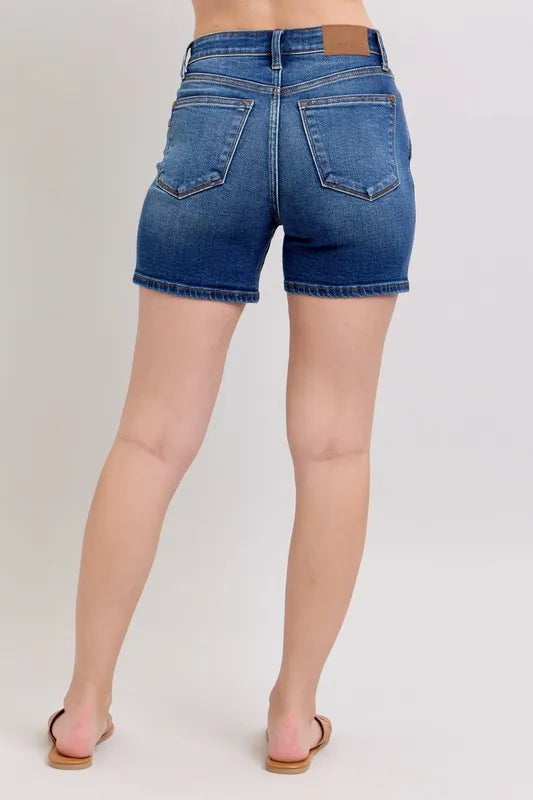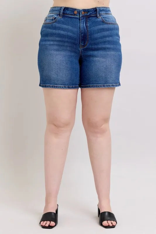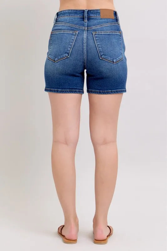 The 2 Button Mid Length Dad Denim Shorts offer a comfortable and casual style for everyday wear. With a mid-length design and two-button closure, these shorts provide a relaxed and laid-back look. Perfect for a "dad" style aesthetic, these denim shorts are versatile and easy to pair with different tops for a relaxed yet fashionable outfit.