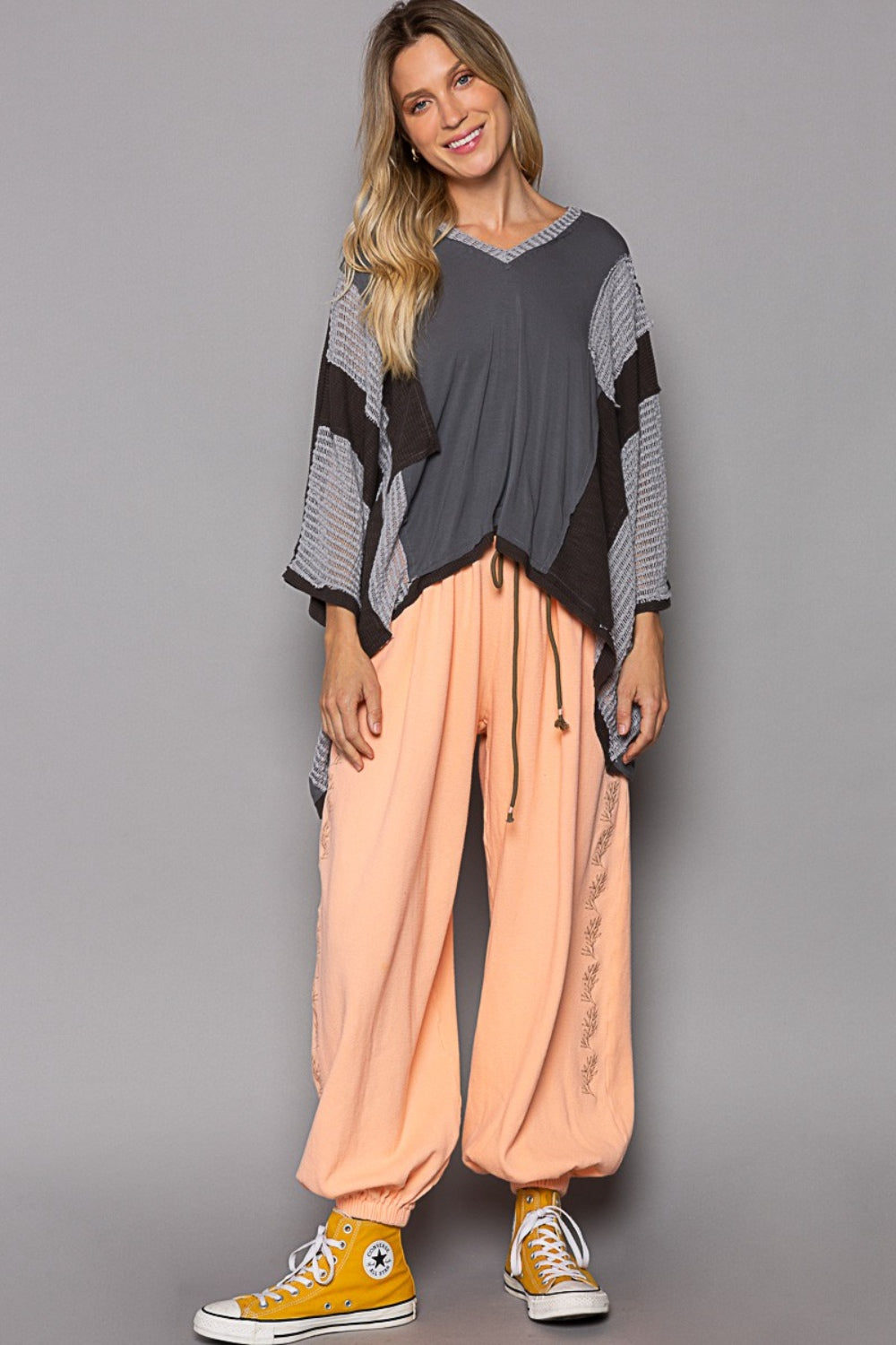 The designed V-neckline knit top features an oversized fit and drop shoulder design, creating a relaxed and stylish silhouette. Made with a unique blend of see-through fabrics, this top offers a modern and edgy look that is perfect for making a statement. The frayed edge detailing throughout the garment adds a touch of texture and a hint of urban chic. Whether styled with jeans for a casual outing or tucked into a skirt for a more elevated look, this knit top is versatile and fashion-forward. Embrace the contemporary and trendsetting style of the V-neckline knit top for a bold and confident ensemble that showcases your individuality.