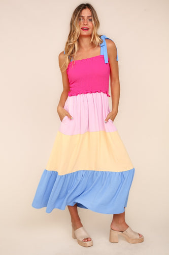 Haptics Abstract Print Smocked Waist Dress with Pockets